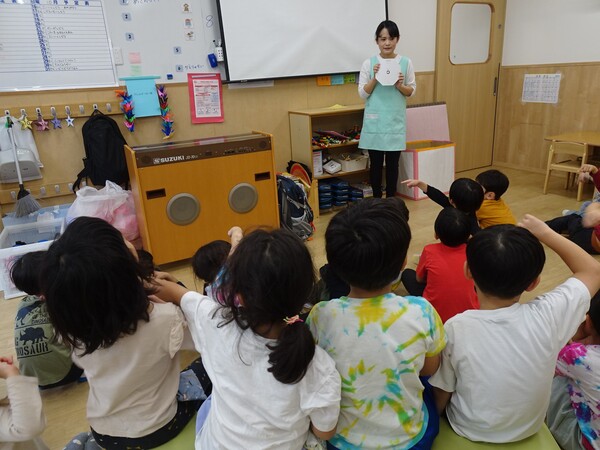 着替えの際には、上の服を脱いだらすぐに新しい服を着る、ズボンも同様にするなど、体を見られない工夫も一緒に考えました。また、「トイレをのぞかれたら?」「ふざけてお尻を見せるのは?」などを通じて、自分の体とお友だちの体を大切にする気持ちを育てました。