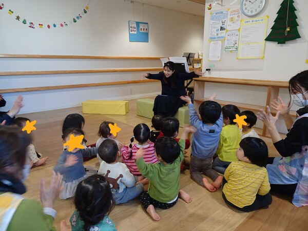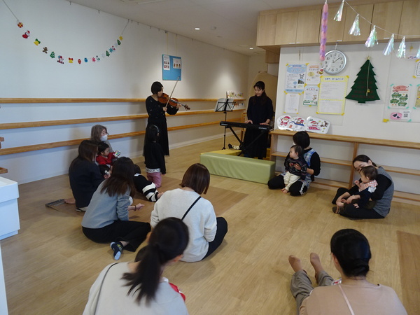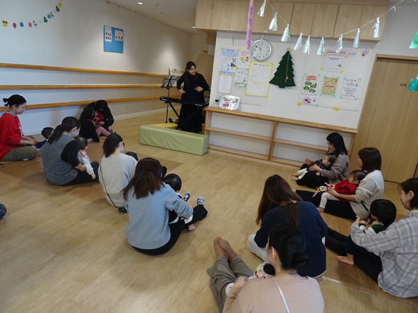 二回目の公演は地域の親子の皆さんが参加し、クリスマスバージョンのリトミックに体を揺らしたり、ニコニコしたりと楽しそうでした!