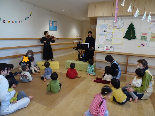リトミック講師のあやこ先生と共に保護者の方がバイオリンを演奏してくださり、素敵な音色に子どもたちも聞き入っていましたよ☆